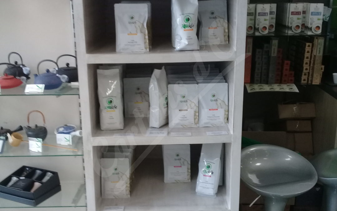 Meuble de rangement dans un magasin de torréfaction